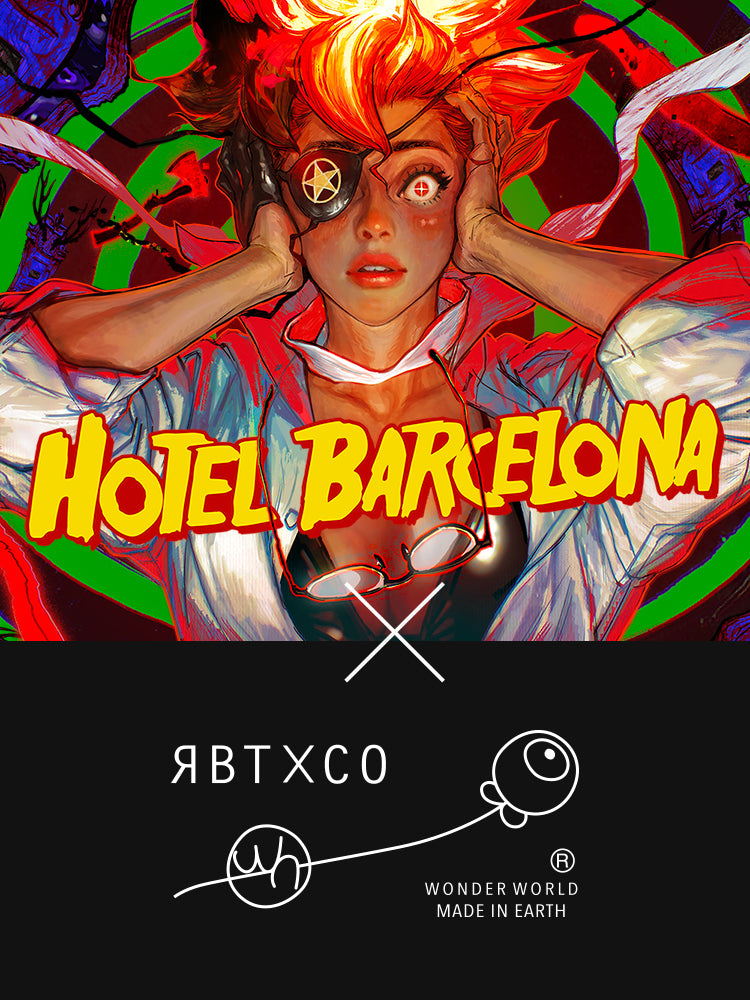 This jacket was specially created by the fashion brand RBTXCO to coincide with the release of HOTEL BARCELONA. Designed as a keepsake to commemorate your journey within the game, it features hand-dyed bleach effects and contrasting red fabric peeking through the shadows of the collar and cuffs—an element inspired by the game’s concept of “phantom.”