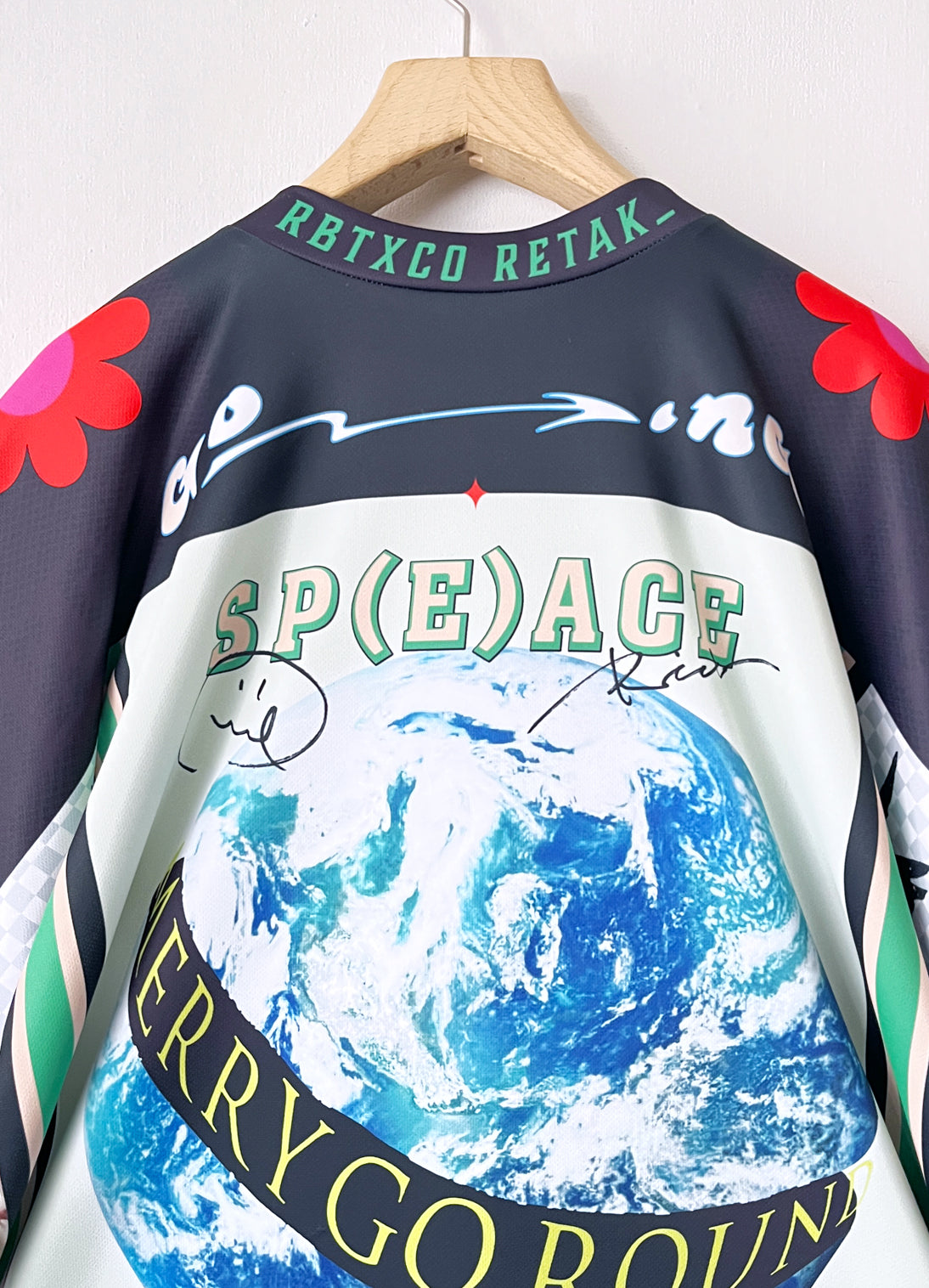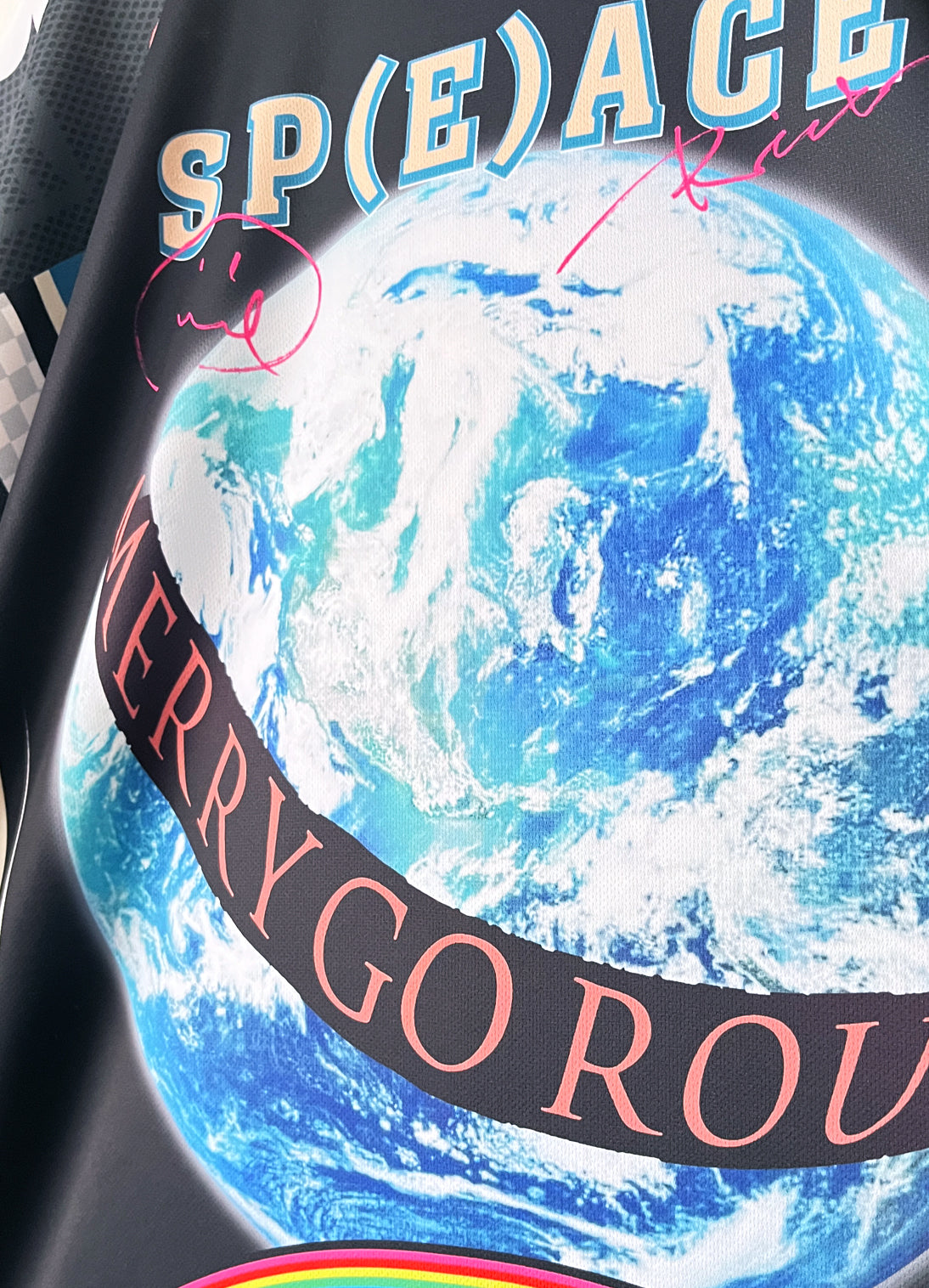 The design concept is based on a fictional ice hockey team, “The Blackholes,” imagining the T-shirt as their team uniform.